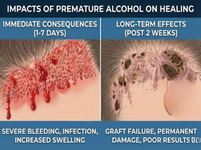 But the grafts at day 5 or 6 are still nowhere near secure. They’re making progress, but the connections are fragile. What alcohol does in that window isn’t always dramatic or immediately visible — it’s more insidious. Increased swelling (especially around the forehead and eyes, which is already annoying enough without help), compromised immune response that makes infection slightly more likely, slower cell regeneration, worse sleep for the next few nights. None of it shows up as a sudden visible disaster. It just quietly chips away at your healing quality.