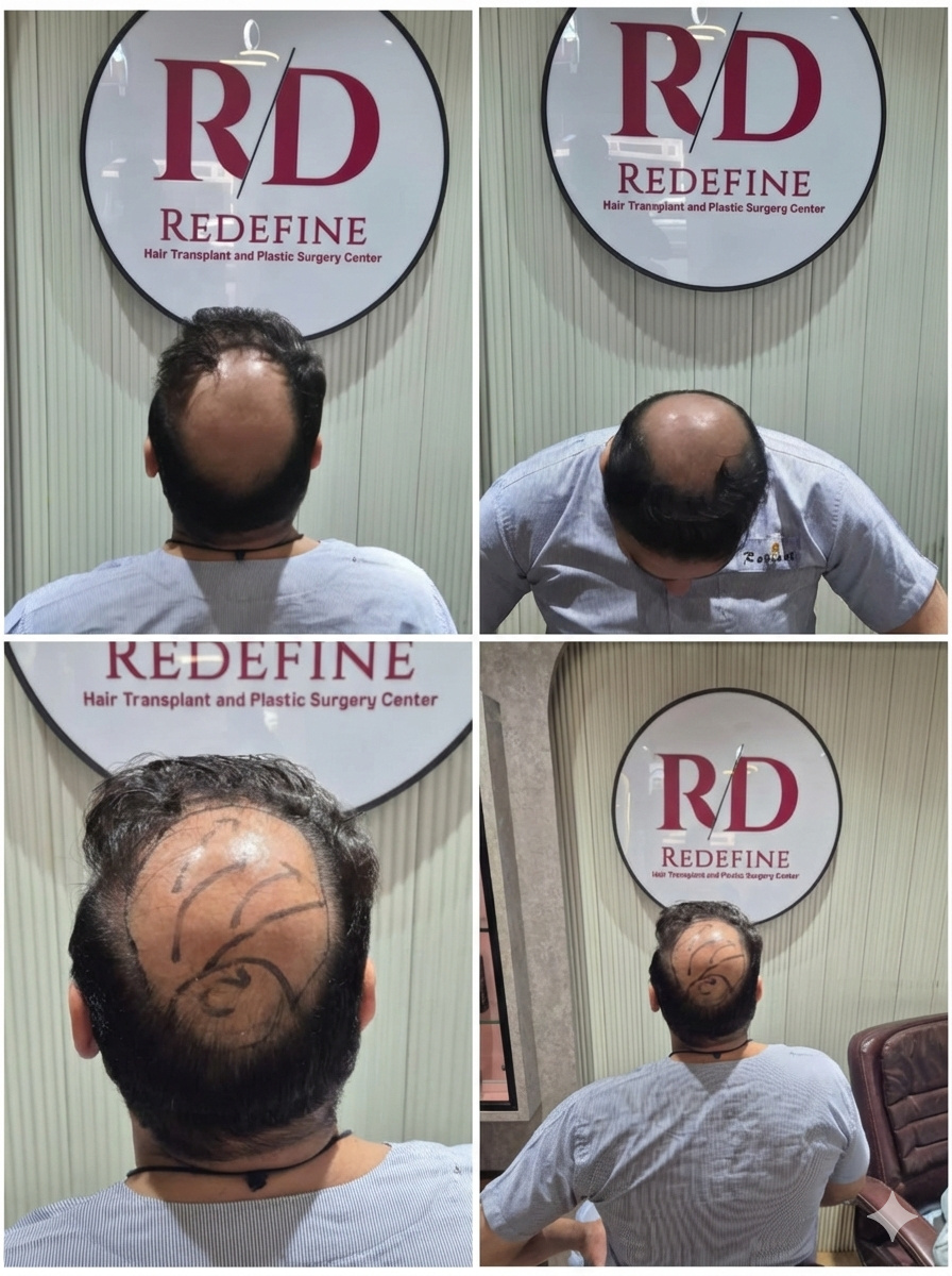 This case study highlights how crown baldness can be effectively treated with proper planning and technique at Redefine Hair Transplant and Plastic Surgery Center under the guidance of Dr. Harikiran Chekuri.